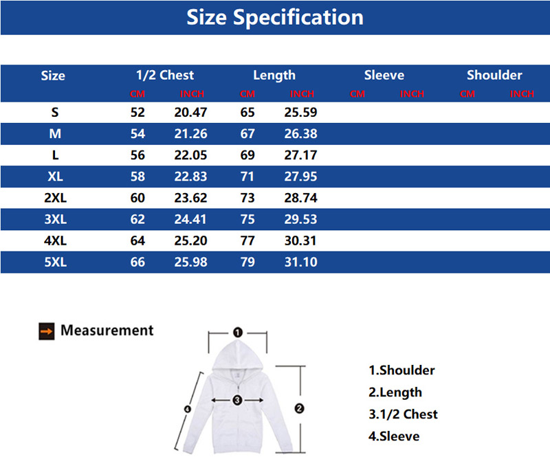 • Sizes: Regular sizes S to 5XL available,  any other special sizes can be customized