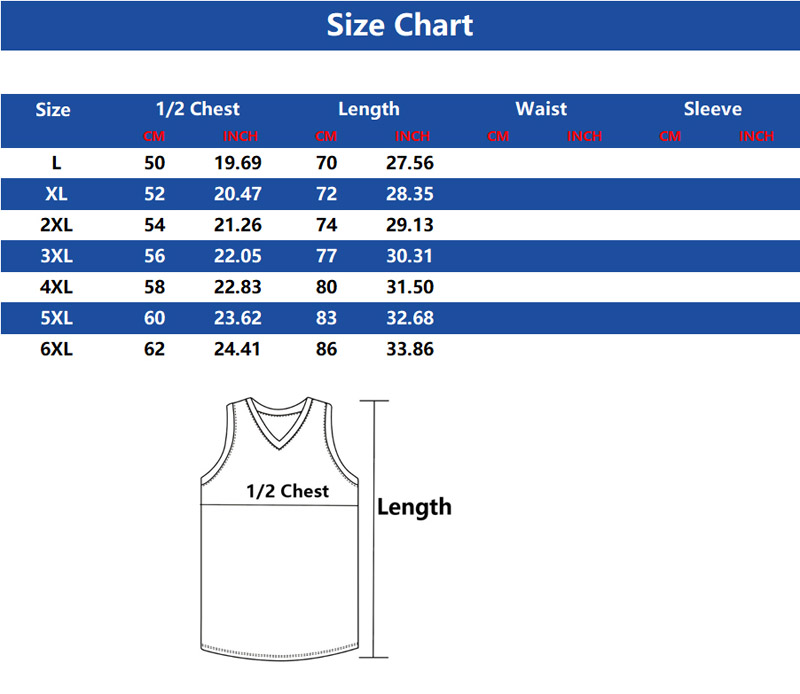 Sizes: Regular sizes L to 6XL available, any other special sizes can be customized