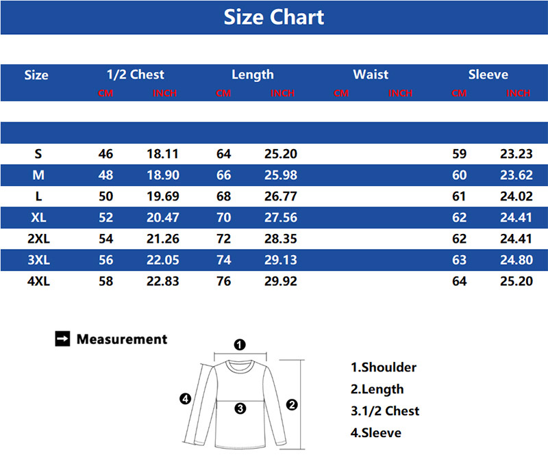 • Sizes: Regular sizes S to 4XL available, any other special sizes can be customized
