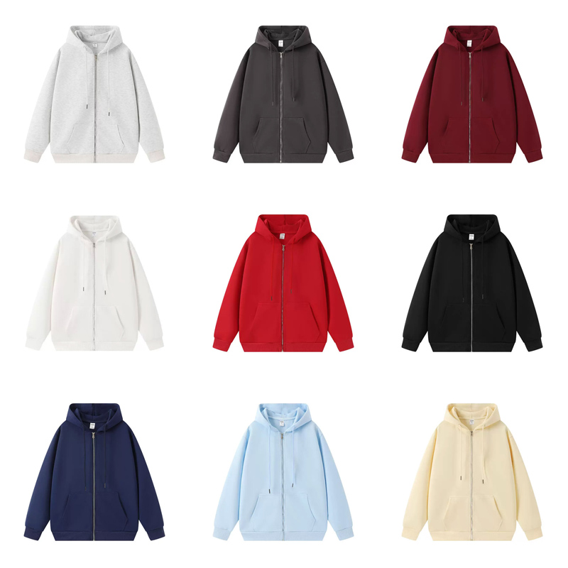 • Product description: 330GSM cotton like fabric Full zipper hoodies