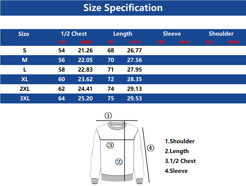 • Sizes: Regular sizes S to 3XL available, any other special sizes can be customized